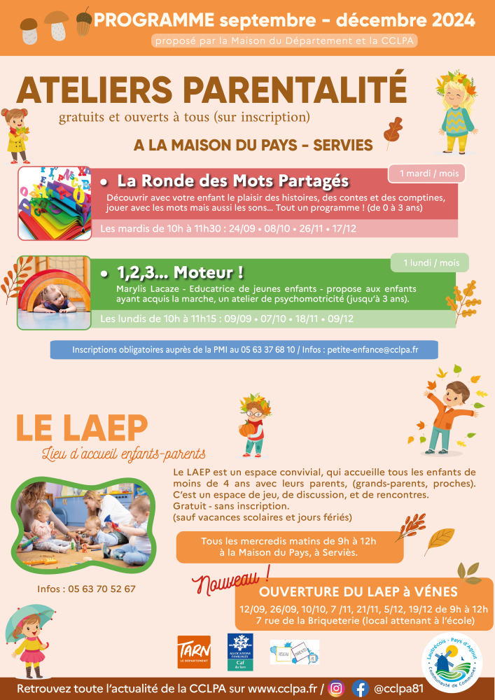 Infos : 05 63 70 52 67 / petite-enfance@cclpa.fr