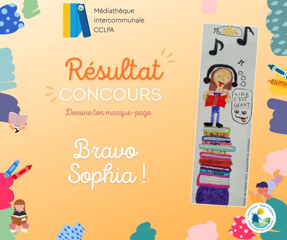 Bravo à Sophia de CM1 qui a gagné le concours pour illustrer le prochain marque-page de la médiathèque !